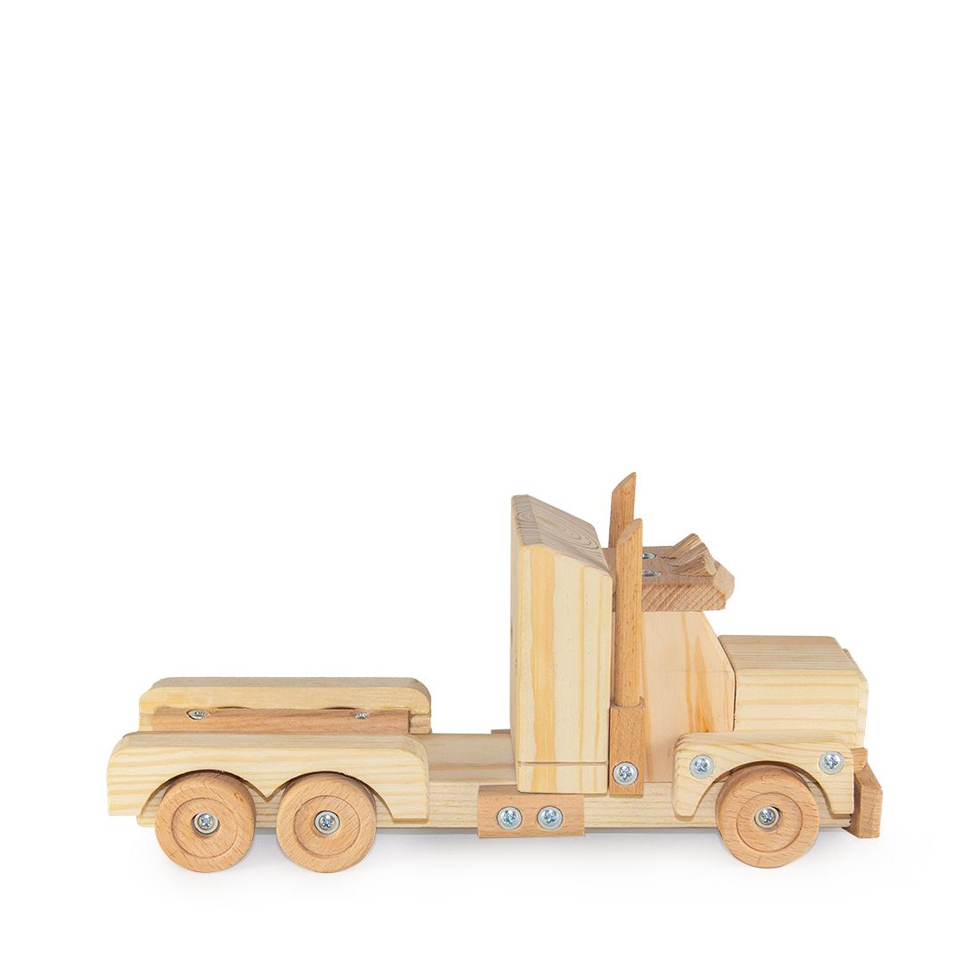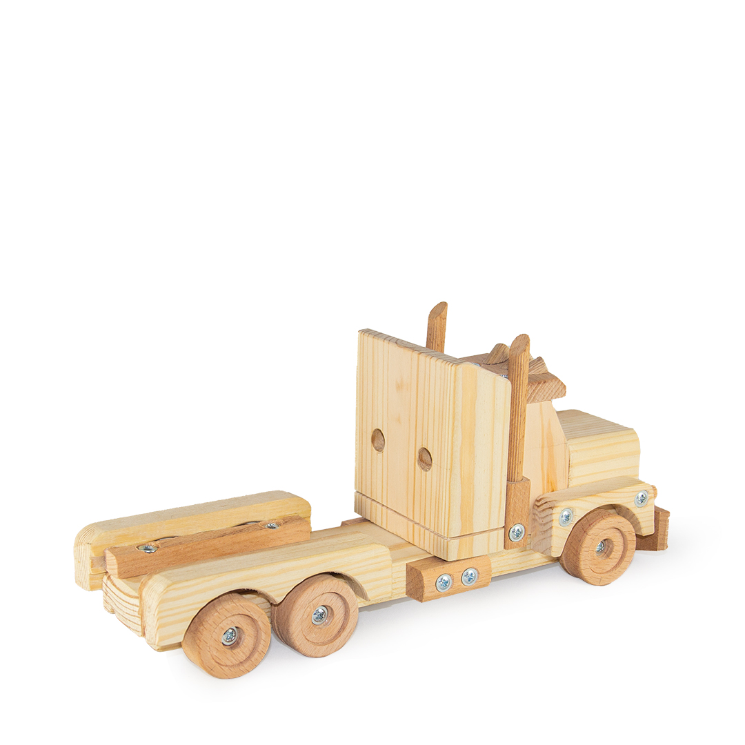 Ahşap Oyuncak Tır; 20 parçadan oluşan bu tır gücünü çocukların onu birleştirmek için kullandığı motor kaslarından alıyor ve kendini otobana çıkaracak becerikli çocukları bekliyor.