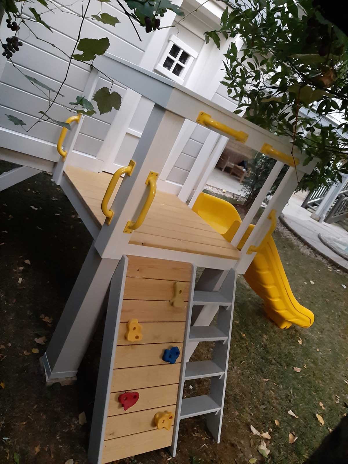 Candy, eğlenceli eğik tasarımı, canlı detaylarıyla dikkat çeken özel bir ahşap oyun evi modelidir. Yükseltilmiş platformu, tırmanma merdiveni ve kaydırağıyla çocuklara hem güvenli hem de hareketli bir bahçe oyun evi deneyimi sunar. Dayanıklı masif gövdesi ve modern çizgileriyle 3–12 yaş arası çocuklar için ideal bir çocuk oyun evi çözümüdür.