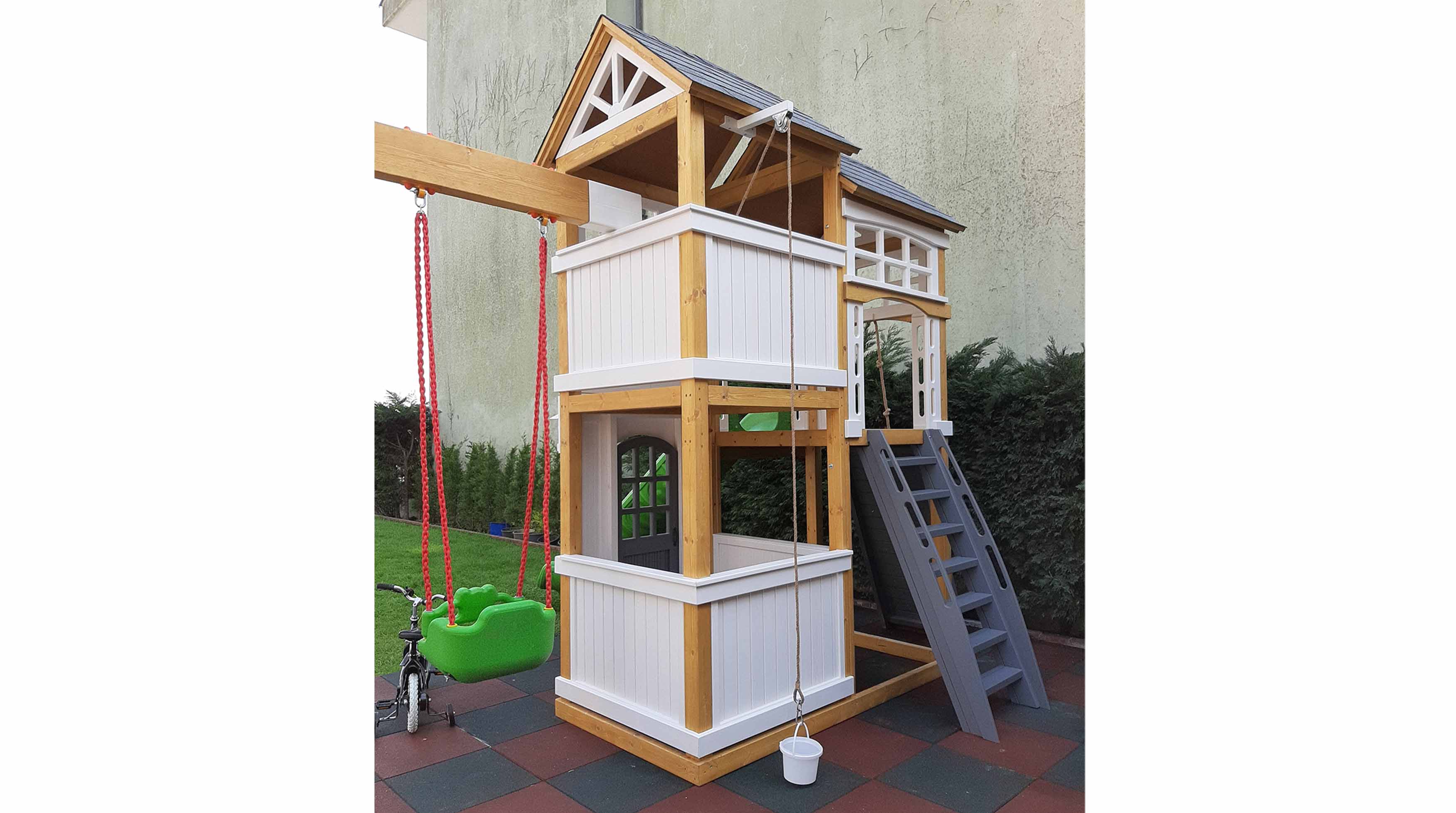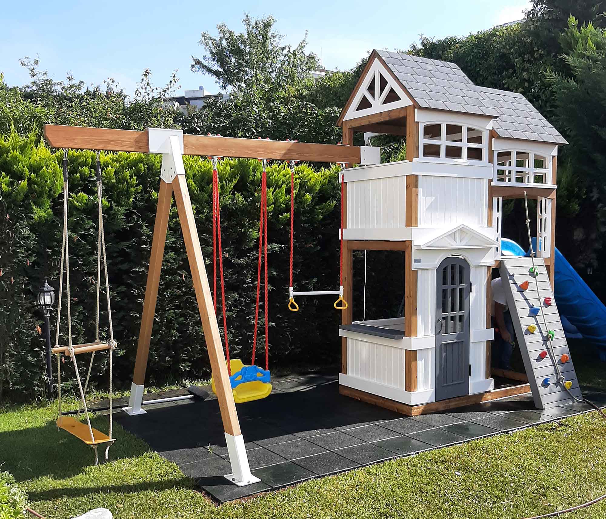 Birden çok aktivite alanına sahip bu oyun istasyonunun yapımında Finlandiya Çamı ve su bazlı Hemel boya kullanılmıştır. İstasyon 2 modelimiz; düz kaydırak, tırmanma duvarı, merdiven, 2 adet oturaklı salıncak, trapez salıncak ve kapalı oyun alanından oluşmaktadır.